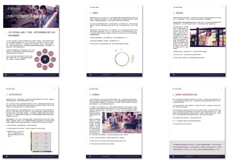 最新一期的RSP高管简报《大客户计划的五个关键要素》中,我们分享了进行客户计划的重要性,并分享了有效的客户计划中的五个关键要素,掌握这五个要素,任何一个销售组织都可以重新制定其客户计划策略,以实现更强大的销售表现。