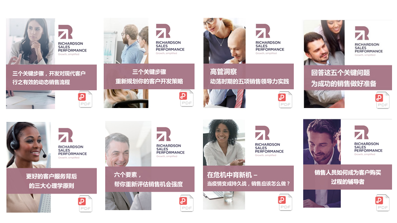 我们广泛的销售培训内容涵盖所有关键的计 划、执行和管理学科,通过多种交付方式。由 于我们的课程是世界一流的,Richardson被公认为世界 顶尖的培训公司之一。